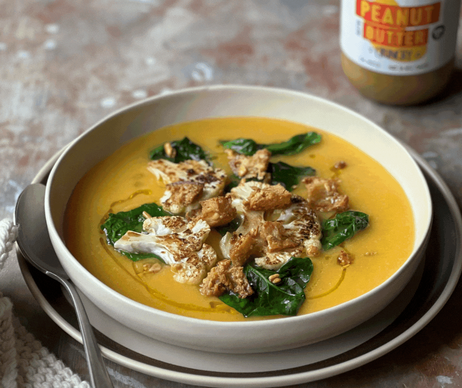 Outstanding food editor Kathy Paterson set out to make a cauliflower soup that didn’t rely on a heap of milk or cream to elevate its flavour. The genius is serving with Forty Thieves Crunchy Peanut Butter croutons helps the flavour mission, as does adding super fresh vegetables and using quality stock - not all store bought stocks are created equal, so taste the soup as you go; as there could be enough seasoning in the stock.