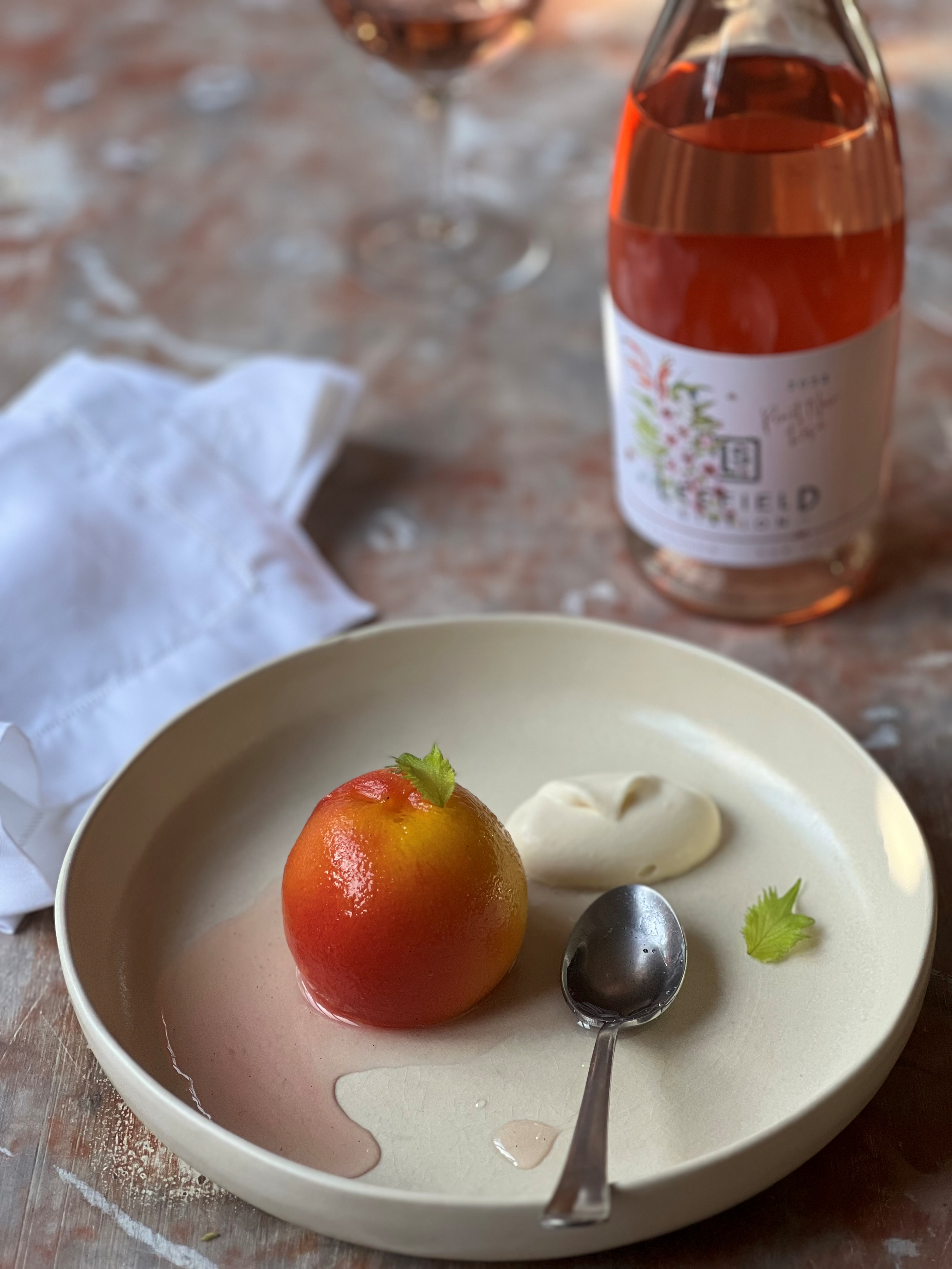 Poached Peaches and Leefield Station Pinot Noir Rosé Cream